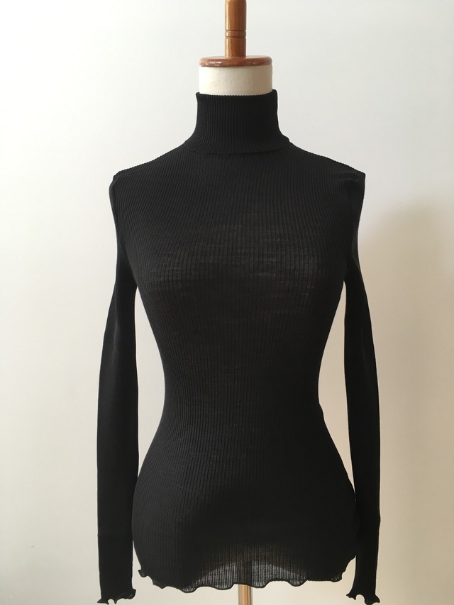 【Oscalito】2色 タートルネックハーフスリーブカットソーー silkwool Black/CI