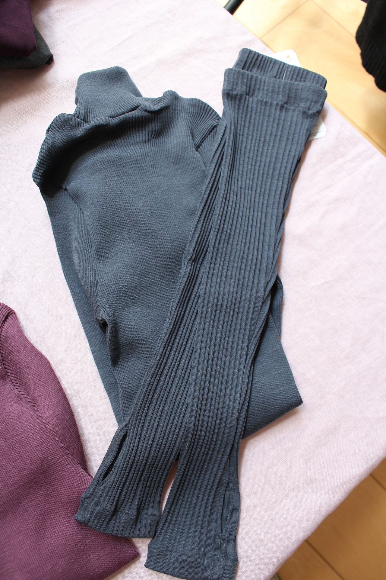 天然素材のリブ素材なので、無理なく身体にフィットし、身体の熱をウールとシルクが心地よく保ちます。