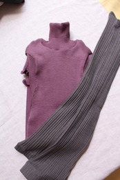 天然素材のリブ素材なので、無理なく身体にフィットし、身体の熱をウールとシルクが心地よく保ちます。
