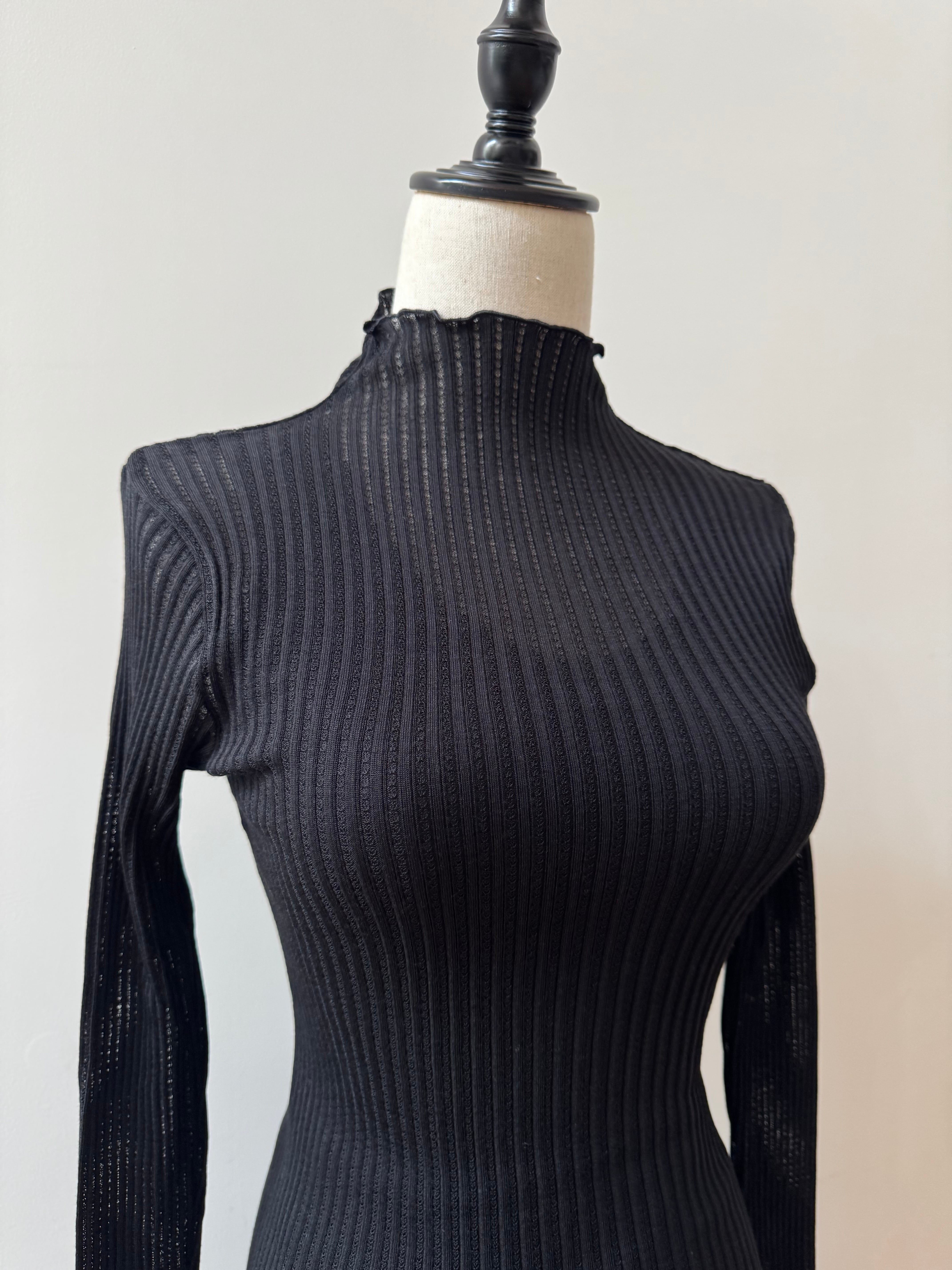 【Oscalito】長袖ハイネックシルクウールレースリブカットソー