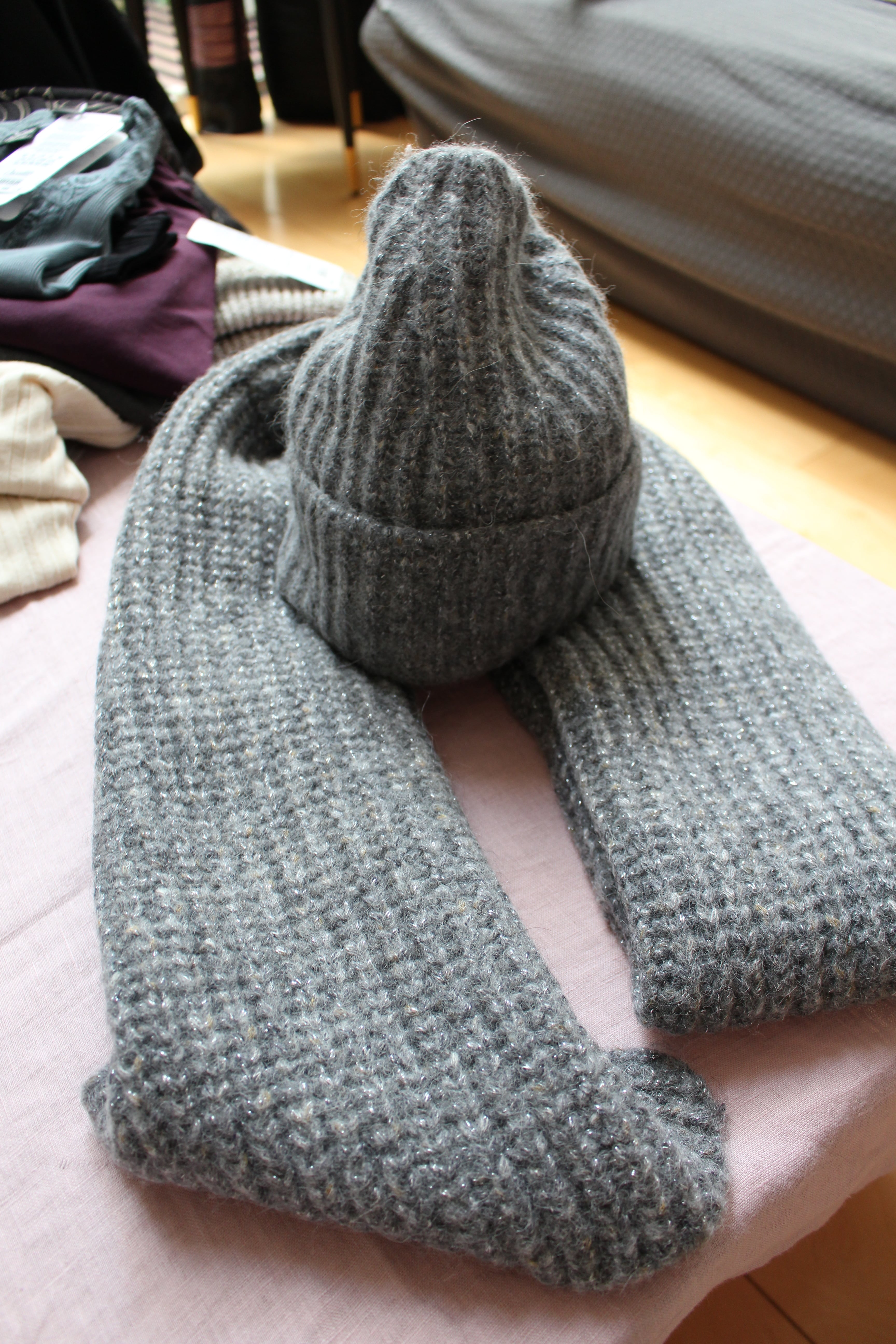 Oscalitoのアルパカニットのマフラーとおそろいのニットキャップ。