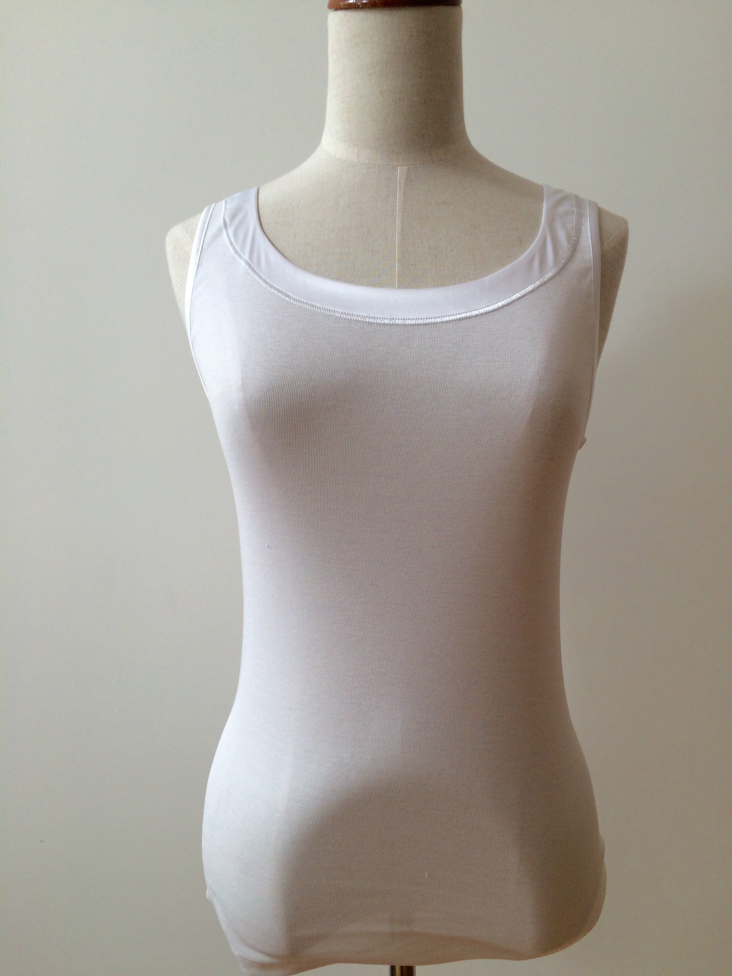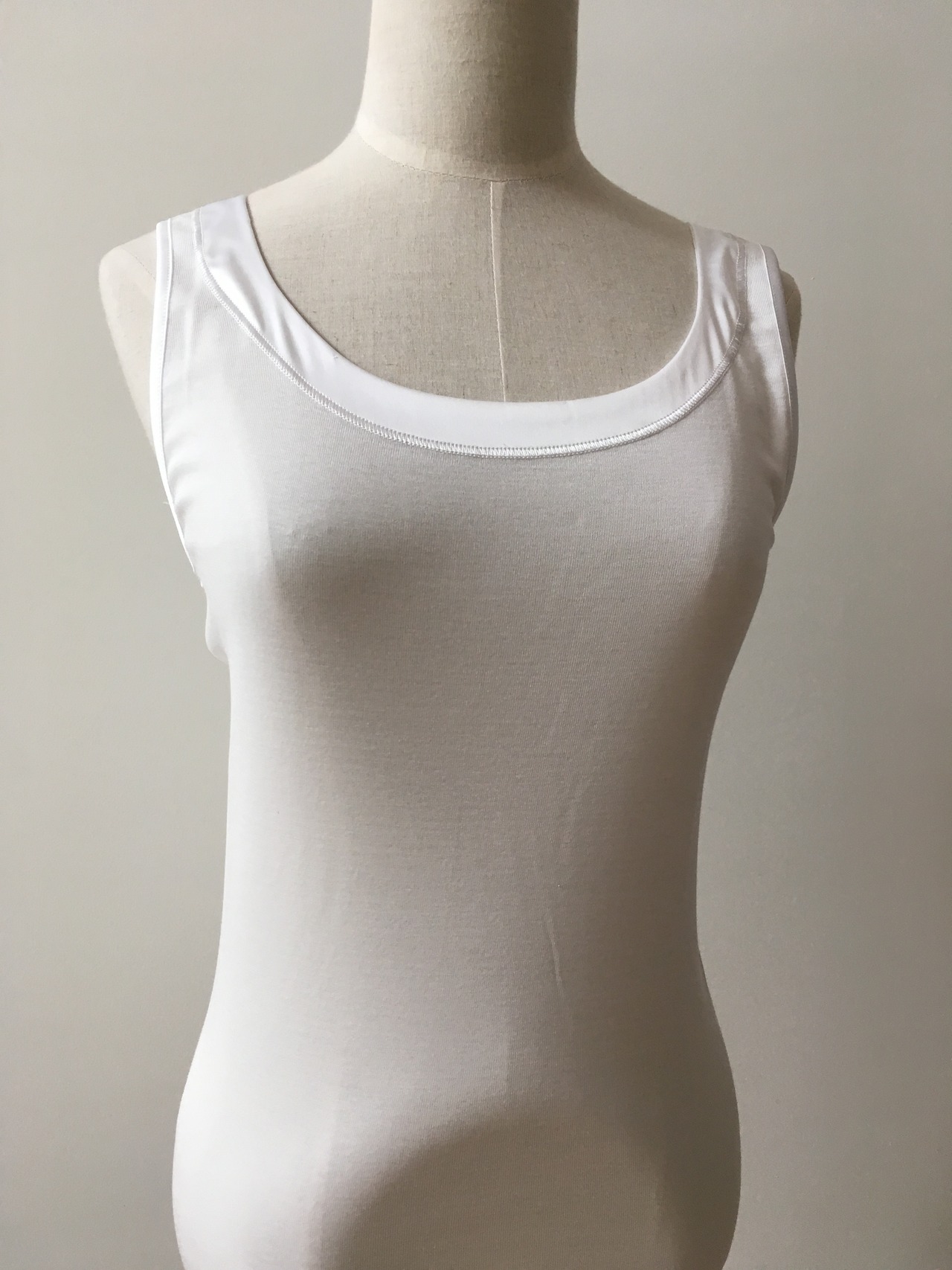 最高級のイタリアンコットン100%を使ったオスカリートのチューブトップのタンクトップ。通常のリブ素材とは異なり、フライス素材で身体にほどよくフィットするのが特徴です。丈の長さもしっかりとあるので、インして着ていただけ、背中が気になりません。ブラウスやジャケット下のジャケットイン、シースルーのトップスのインナーとしても活躍します。
