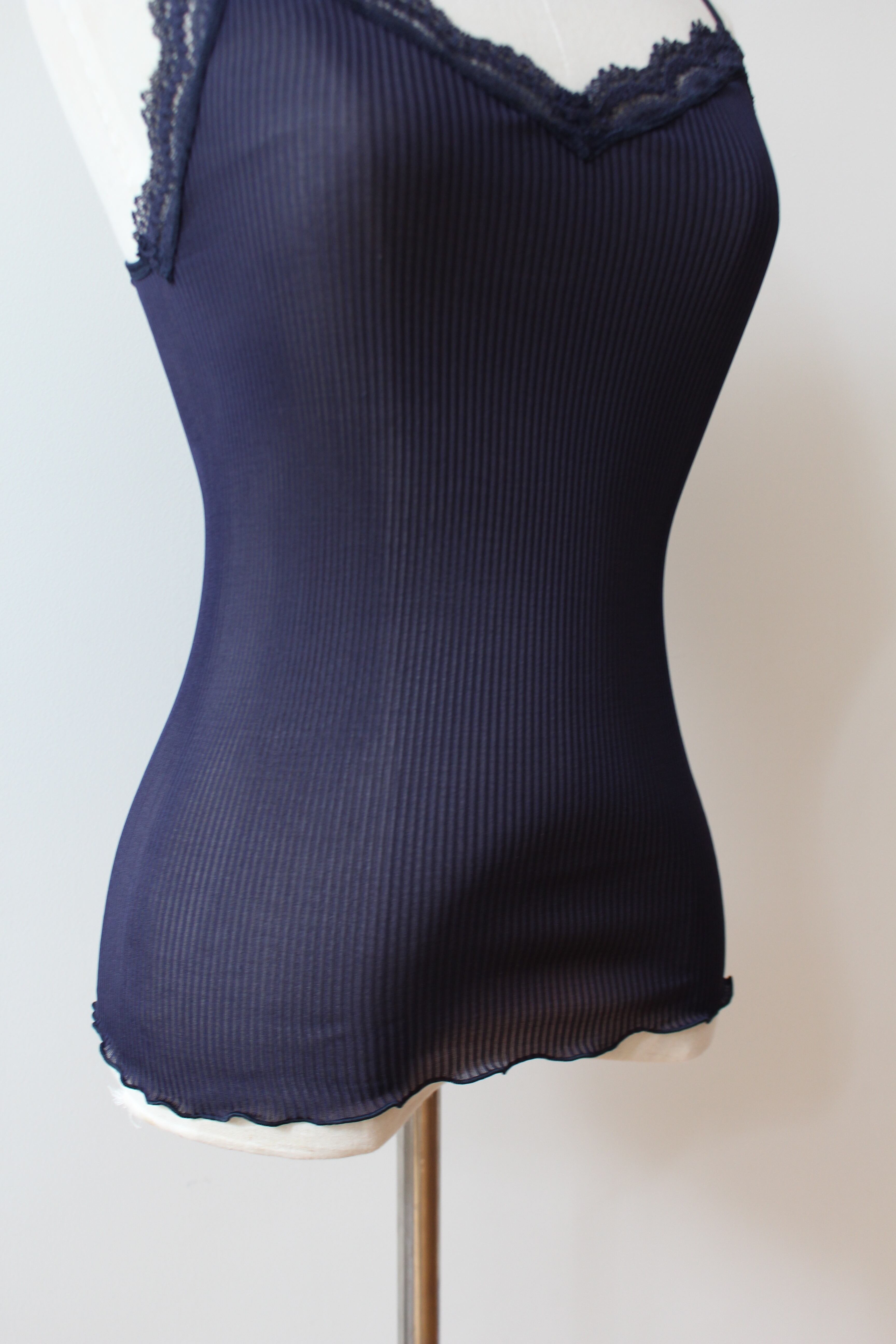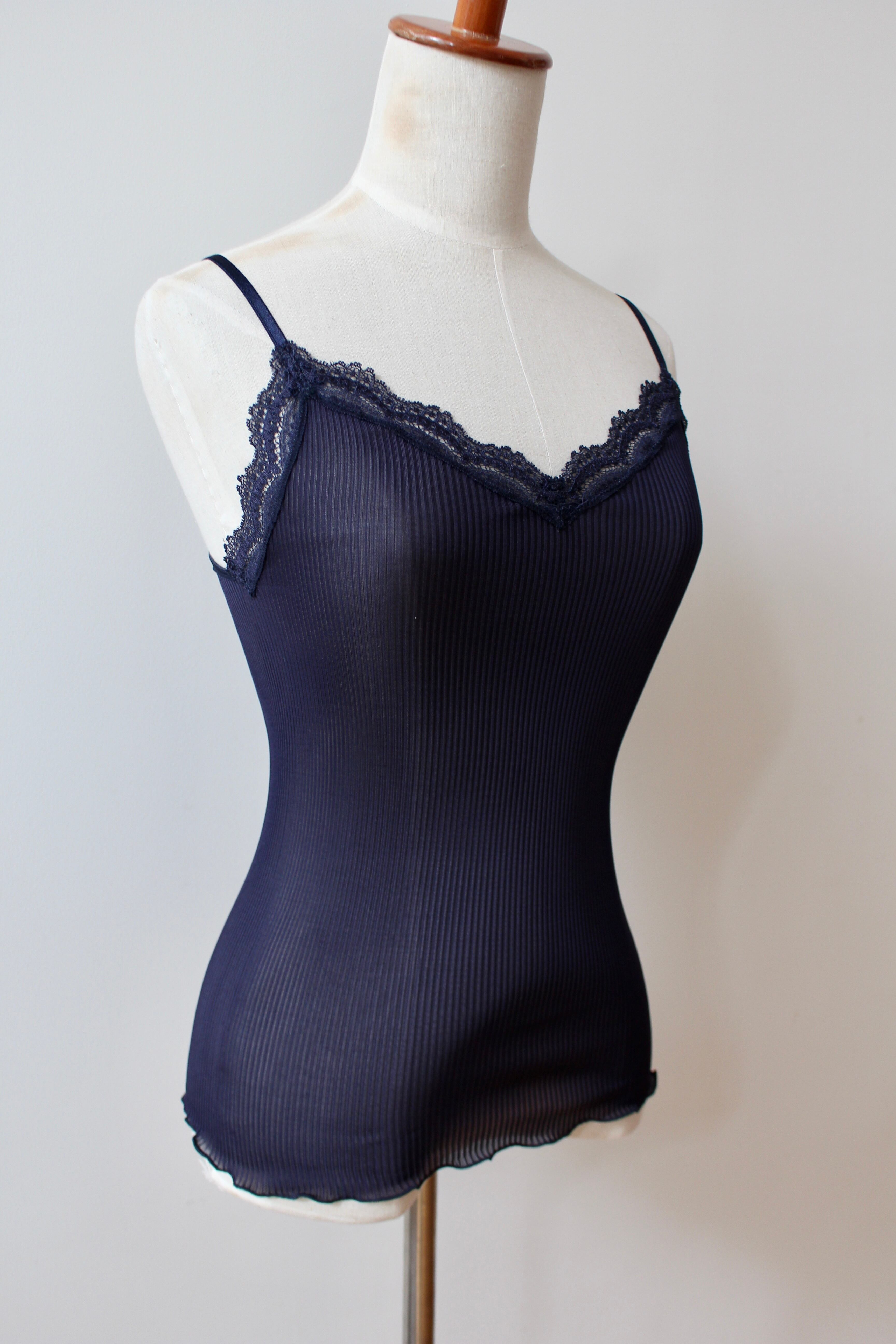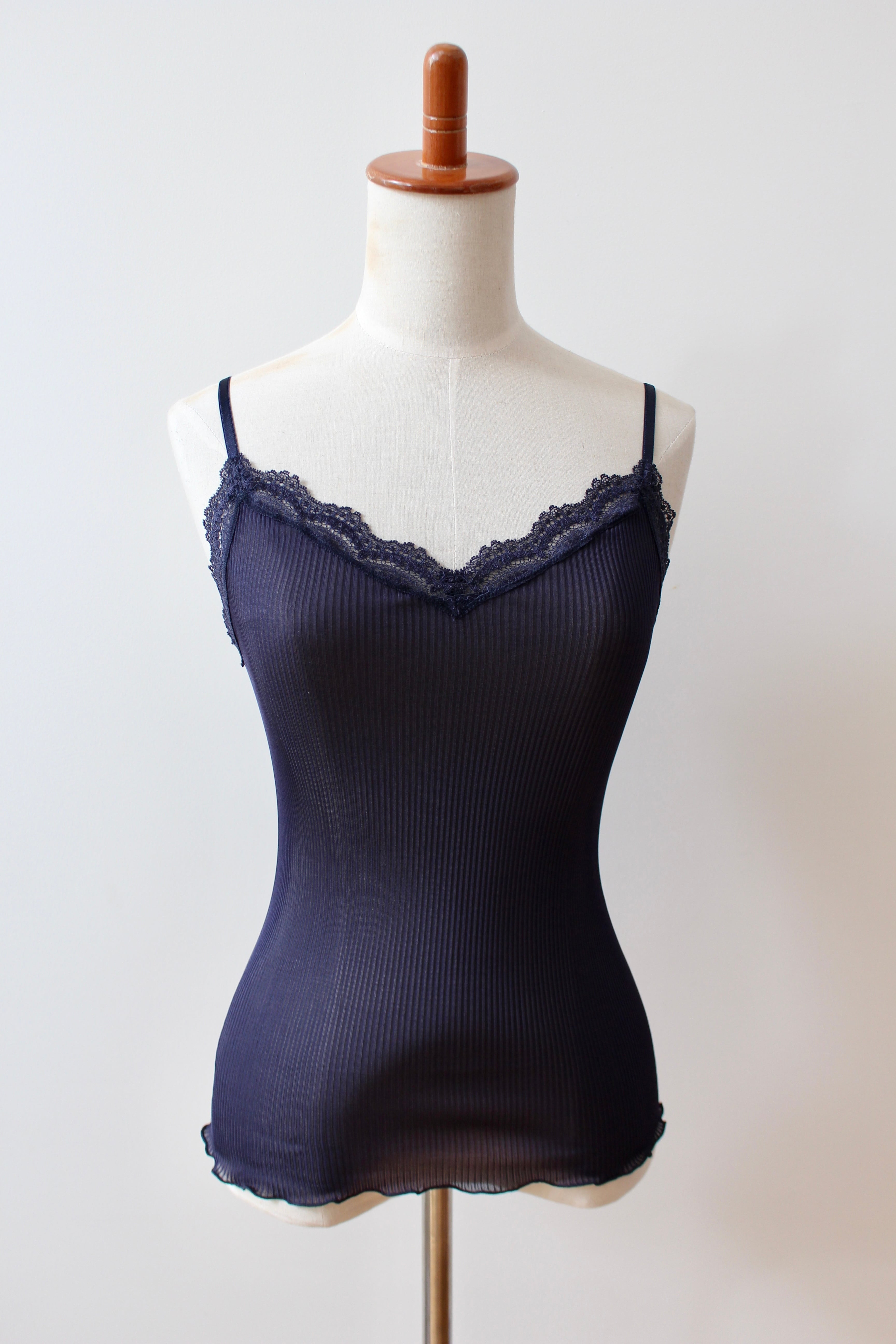 最高級のイタリアンシルク100%を使ったオスカリートのキャミソール。リブ素材およびサイドシームレスで身体に自然にフィットし、寒い時も暑いときも大活躍です!肩紐はアジャスターで調節できるようになっています。また丈のカットはウェイビーカットになっていて、裾がみえてもカワイイデザインです。