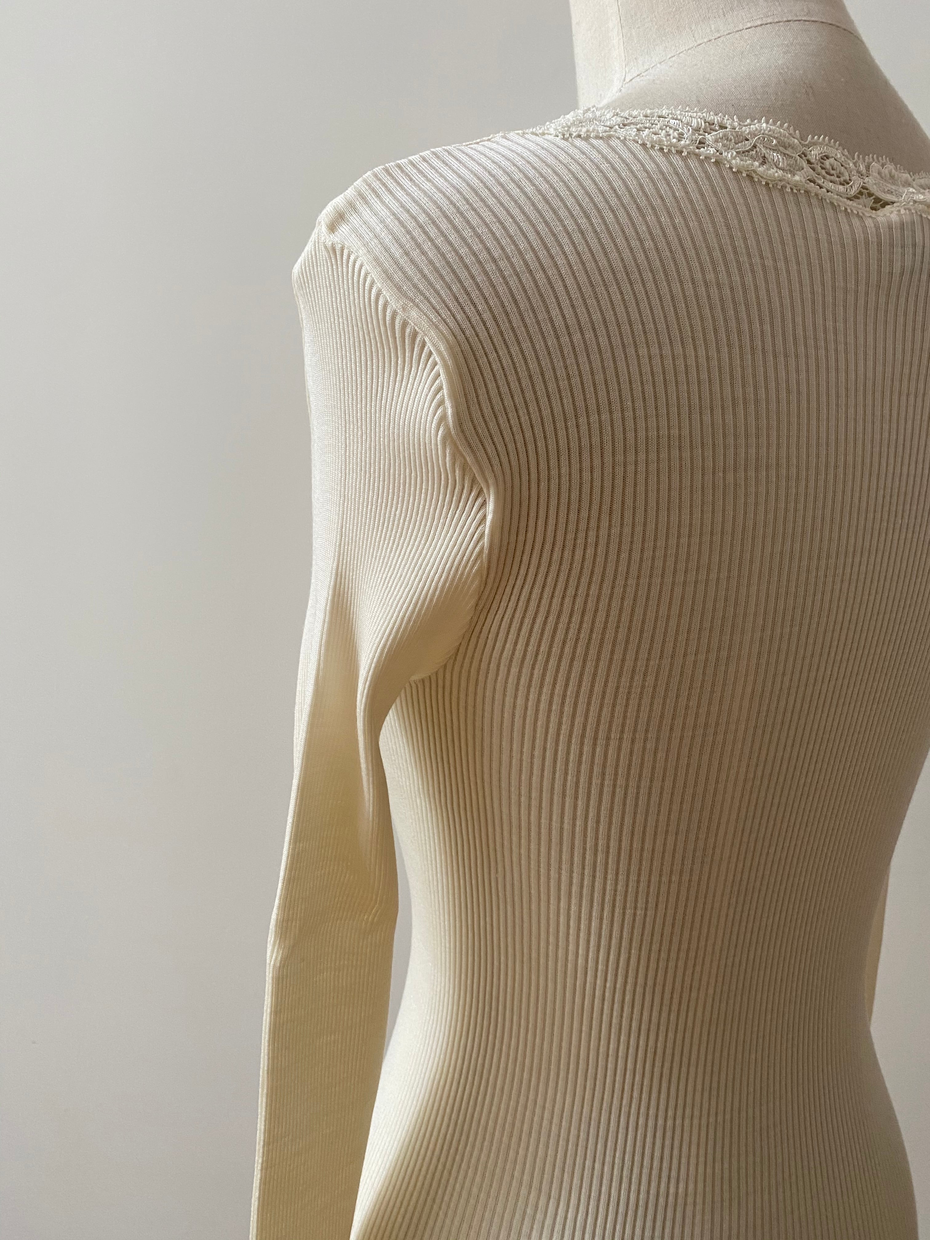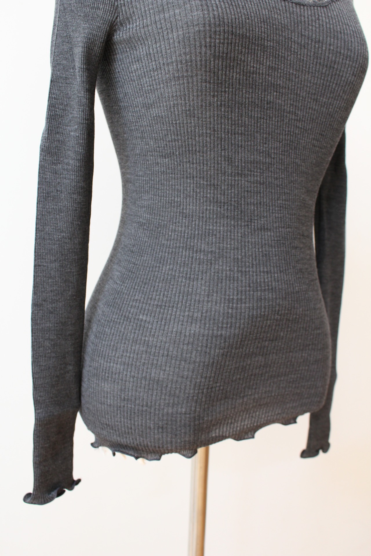 天然素材のリブ素材でかつ両脇に縫い目がないホールガーメンドの仕上げにより、身体のラインに自然にフィットするのが特徴です。
