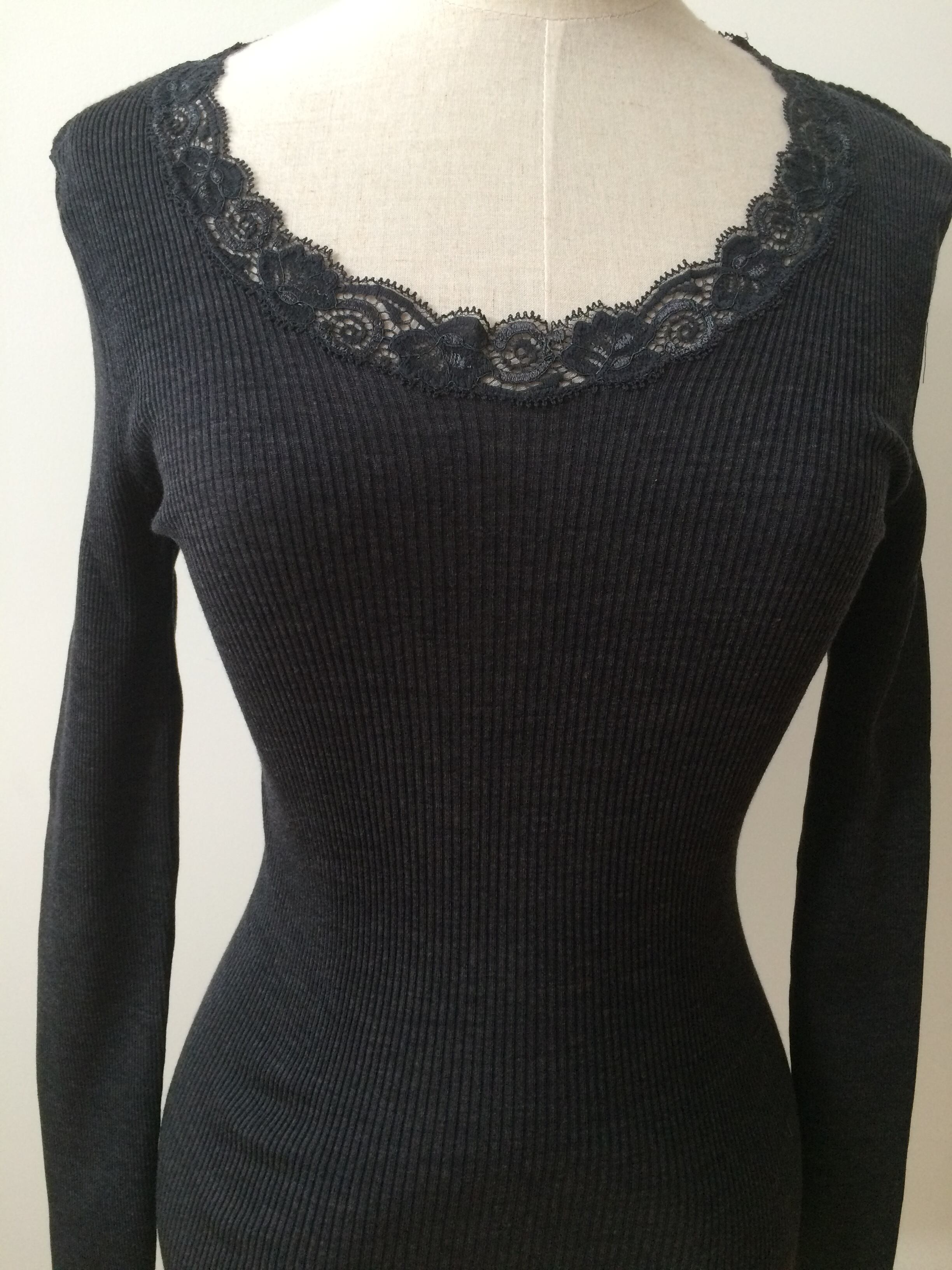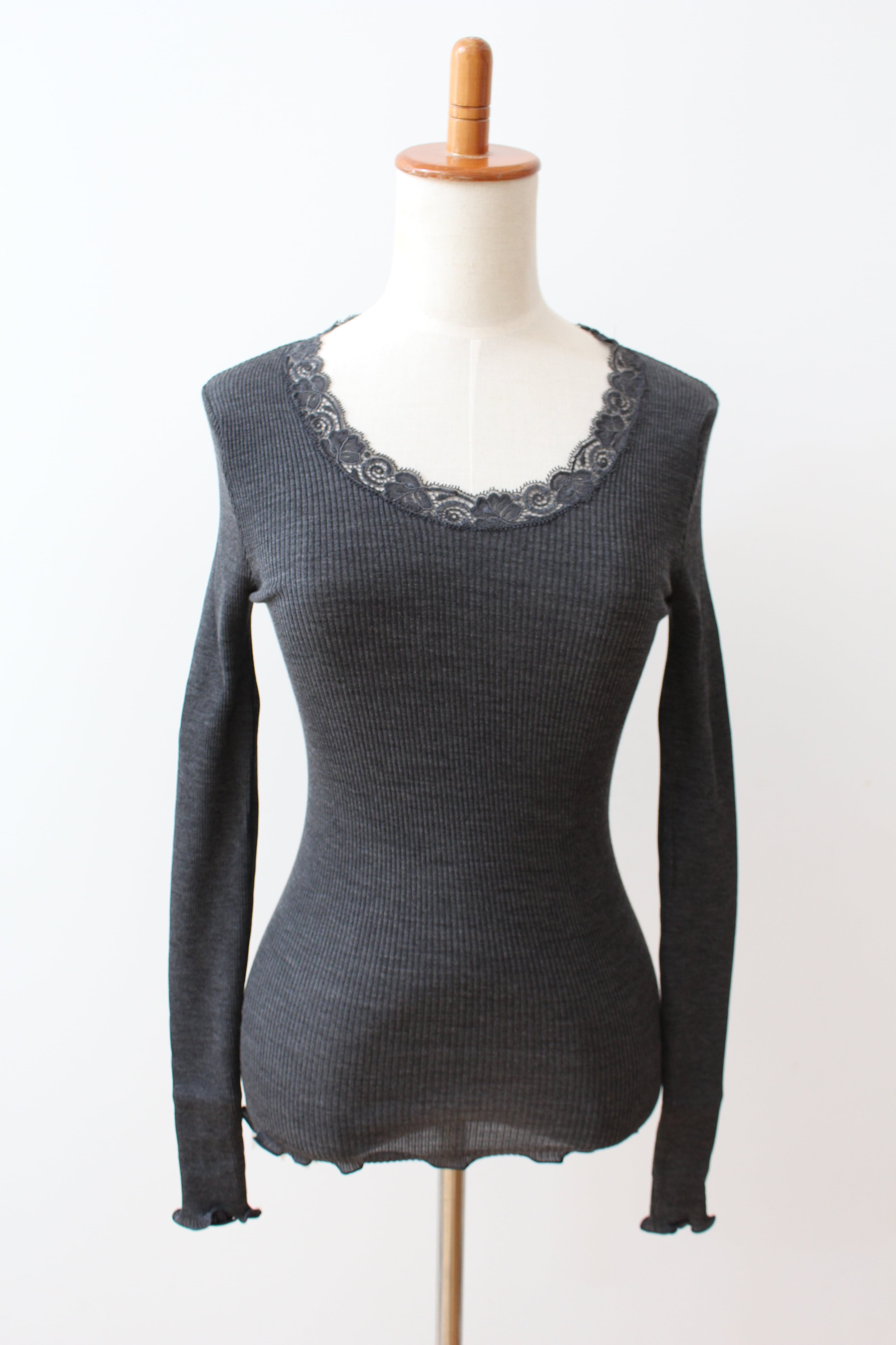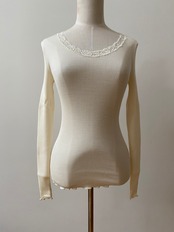 【Oscalito】Silkwool 3色 長袖リバーレースUネックカットソー Castlron/Black/Cham